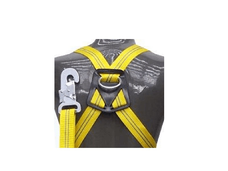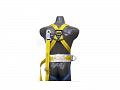 Arnés completo tipo paracaidista. Bandas poliéster alta tenacidad. Toma anticaídas dorsal. Cabo de sujeción regulable de 1,5mt en la cintura con mosquetón estampado y argolla de sujeción en el otro extremo. Protector lumbar de cinta ancho 100mm. Hebillas de regule en hombros y piernas. Sello conformidad Norma IRAM 3622-1