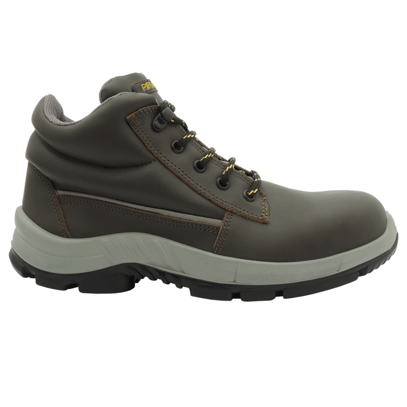 Calzado confeccionado con cuero vacuno flor y vaqueta vacuno flor color marrón. Botín con reflectivo.