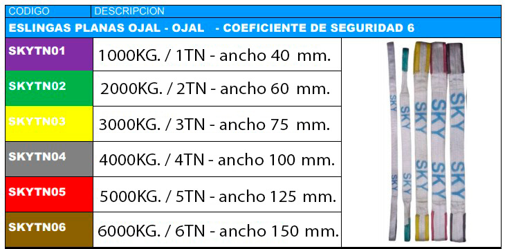 Poliéster alta tenacidad. Coeficiente de seguridad 6. Patrón de colores internaciona.. Mas info