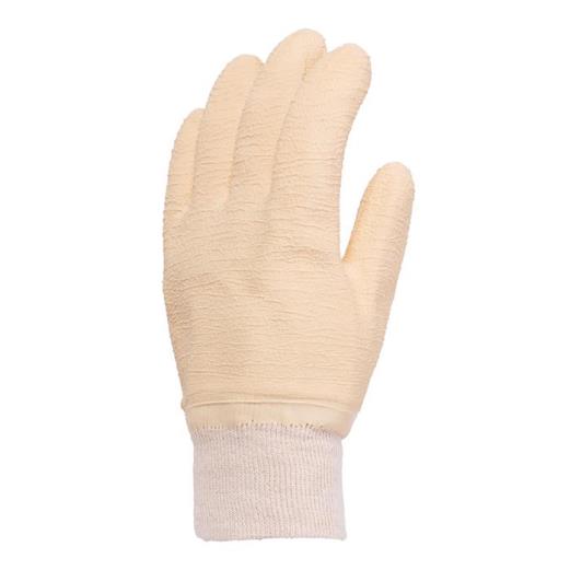 Guante de latex natural, interior con soporte textil, exterior rugoso antideslizante, flexible y resitente al desgarro.
