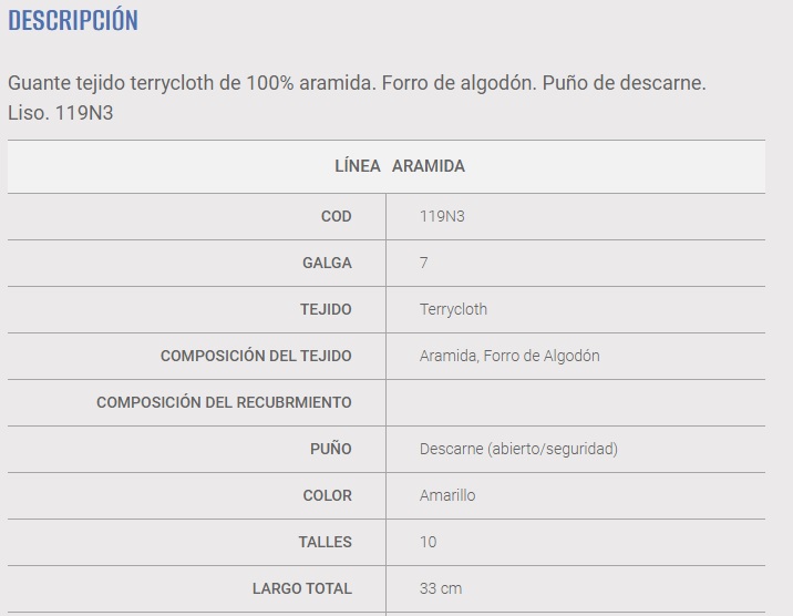 Guante tejido en Terrycloth con hilo de Aramida, forro de algodón, siendo un excelente aislan.. Mas info